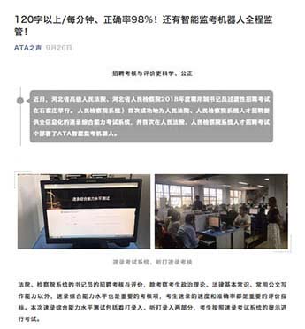 監(jiān)考機(jī)器人已成功服務(wù)了多次大規(guī)模考試,服務(wù)對象包括“全國稅務(wù)師職業(yè)資格考試”,“全國專利代理人資格考試”,“銀行專業(yè)人員職業(yè)資格考試”,“人民檢察院系統(tǒng)人才招聘考試”,以及“ACT(香港考點(diǎn))”等等,廣受好評。