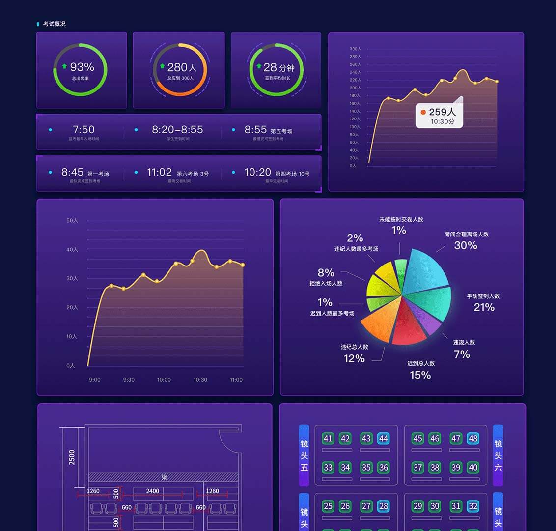 端到端的智能考場解決方案,基于先進(jìn)的深度學(xué)習(xí)算法與計算機(jī)視覺感知技術(shù)、結(jié)合考試業(yè)務(wù)中的典型場景,建設(shè)智能考試AI大腦+視覺傳感器的全名感知體系,幫助傳統(tǒng)考試實現(xiàn)智能升級,提升考場權(quán)威性、安全性和效率。